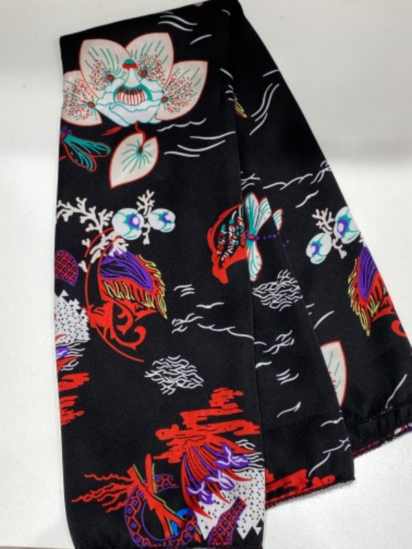 Pañuelo de seda grande, negro con flores 410